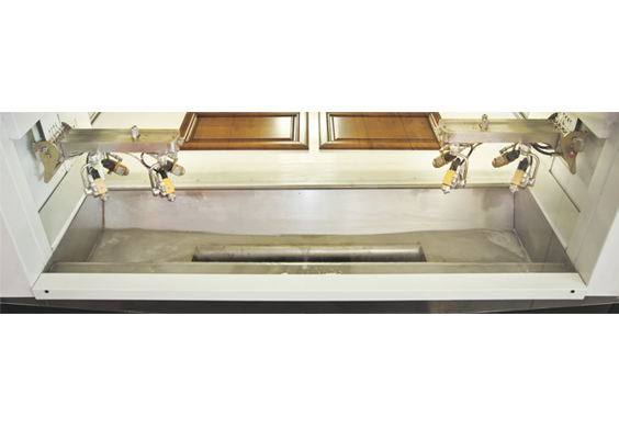 双喷涂臂式设计适合湿压湿式喷涂工艺。 两台喷枪架可通过齿形皮带和电控无刷马达系统使喷枪往复摆动作业,带单独的滑杆和支架。每台喷枪架可安装6支喷枪和3套供漆回路。