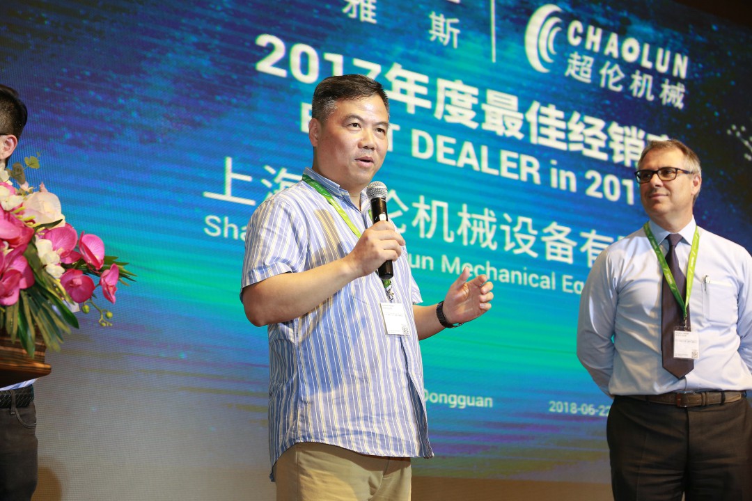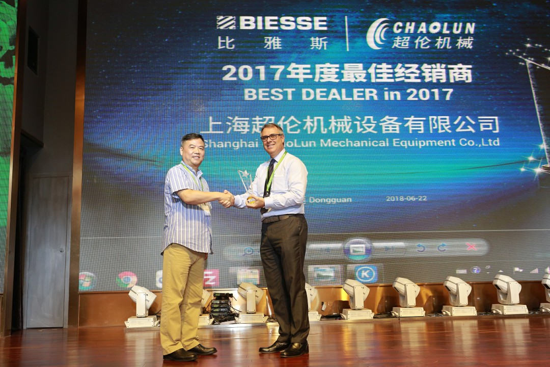 BIESSE比雅斯中国CEO Piergiorgio Franca先生(右)为我司总经理朱永余先生(左)颁奖