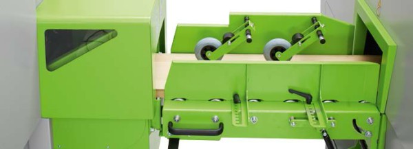 - 平行挡板电动调节,平行挡板锯切宽度1300 mm;