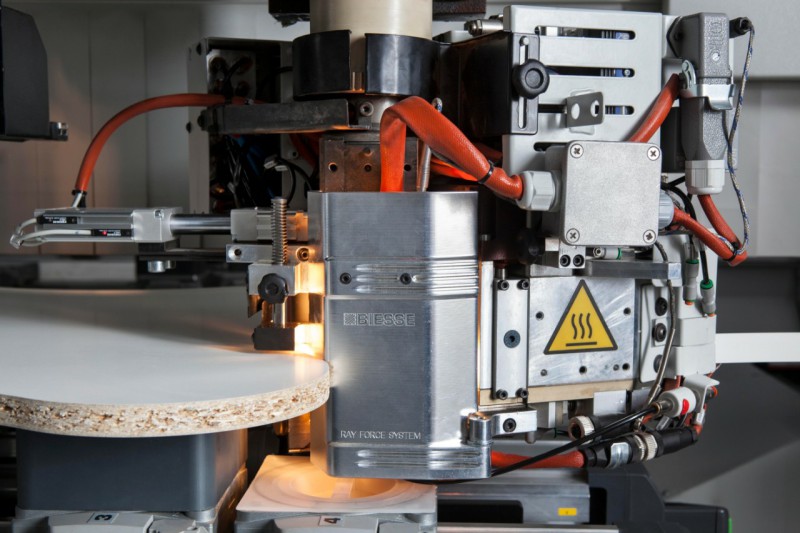 比雅斯专注于提供能够迎合市场特定需求的工艺,并开发了一种新的工艺:将条状的封边条应用于异形面板,射线封边系统。其本质上基于:使用红外线来熔化反应层,不用胶水。