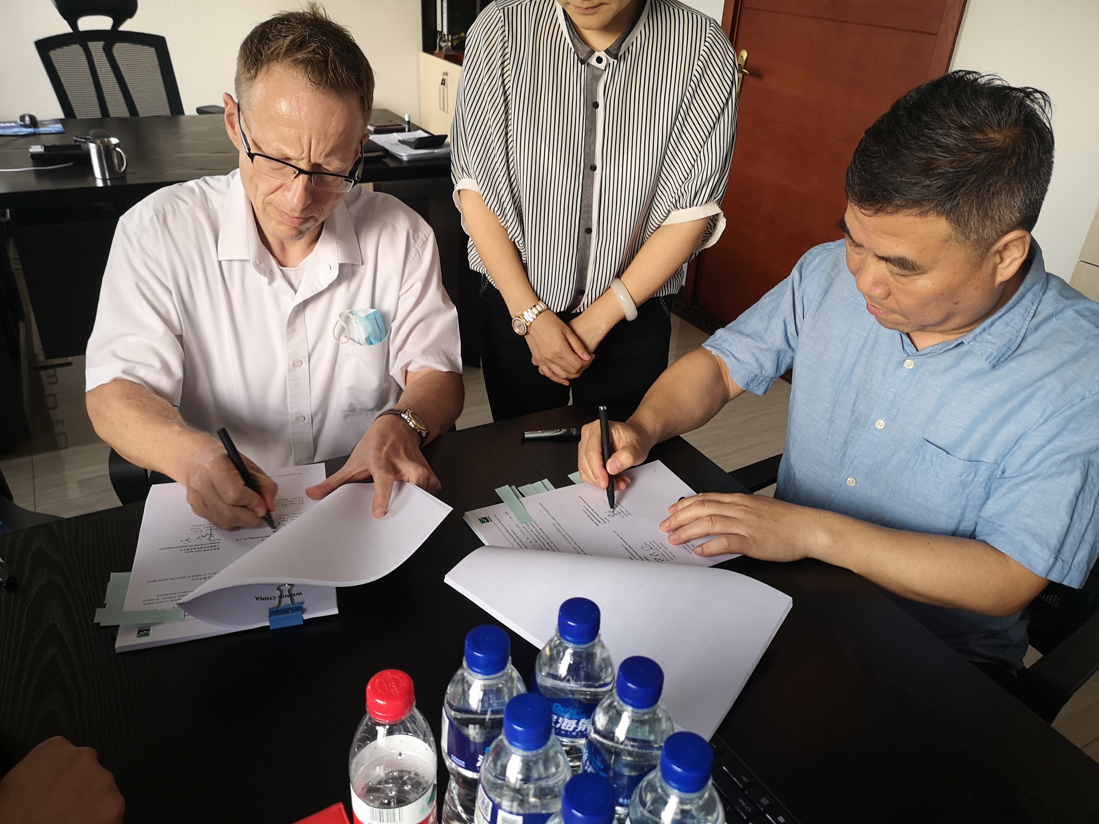 澳门新莆京游戏大厅总经理朱永余与威力亚太销售总监兼威力(烟台)木业技术有限公司董事总经理Frank Ralf Mueller 进行销售代理商协议签约。